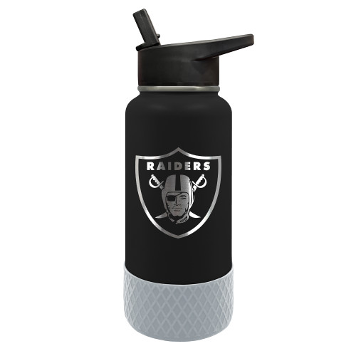 Las Vegas Raiders Black and Silver 32 oz Throwback Thirst Hydration Stainless Steel Water Bottle with Silicone Base and Etched Team Logo by Great American Products