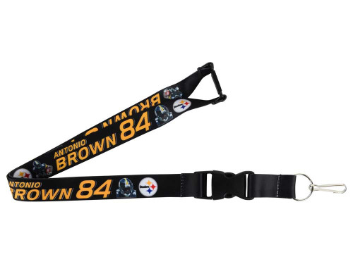 The Pittsburgh Steelers Antonio Brown Player Lanyard is 1" wide with a detachable bucket for versatility. The design sports the officially licensed logo and player of your favorite team, while the clip-on key chain keeps all of your essentials handy